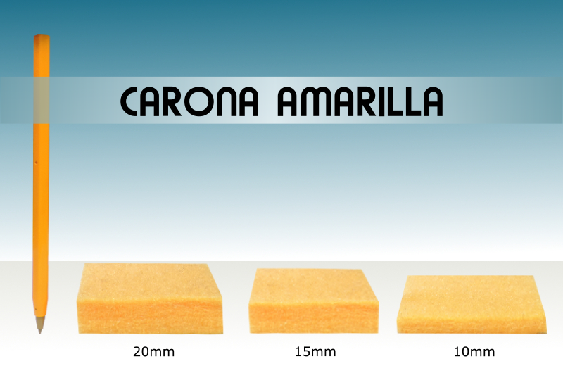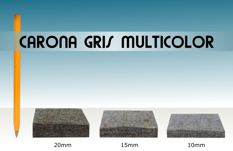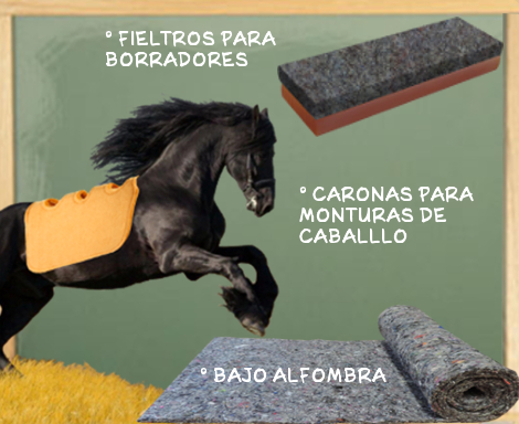 Caronas: Fieltro especial utilizado para la elaboración de borradores, monturas de caballos, entre otros usos. Disponible en 10, 15 y 20 milímetros de espesor, en color amarillo y gris multicolor.